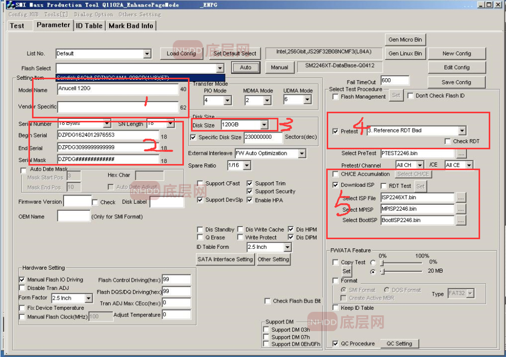 2246XT因为都是老颗粒,开卡成功后最好使用跑圈软件跑两圈或以上,如果出现新增坏块,不需要再跑RDT, pretest选择 reference RUNTIME BAD再开一次,然后再跑,如果两圈都通过且使用HDTUNE查看smart不出现错误一般就没有问题了。
