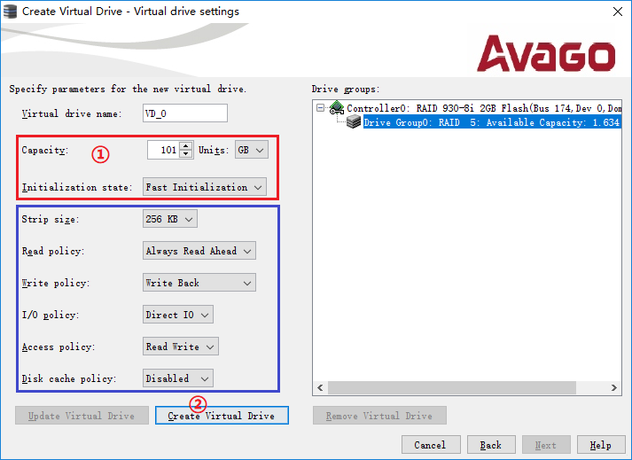 右键点击阵列卡型号,再点击”Create Virtual Drive”