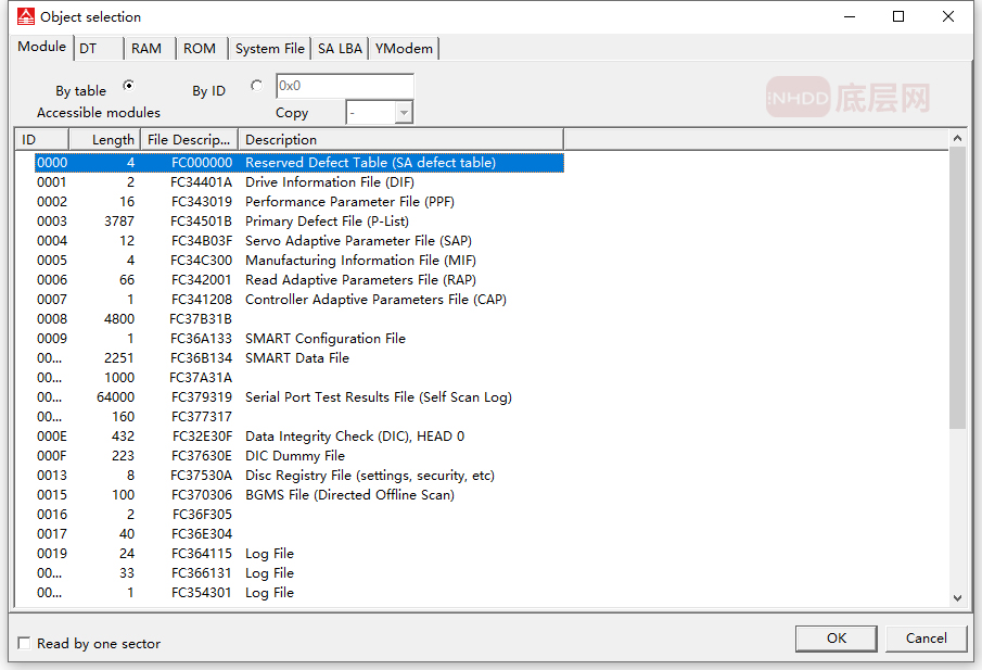 FILE_3_01A_0 = ~0001.rpm —— Drive Information File FILE_3_019_0 = ~0002.rpm —— Performance Parameter File FILE_3_01B_0 = ~0003.rpm —— P-List FILE_3_03F_0 = ~0004.rpm —— SAP (Servo Adaptive Parameters) FILE_3_300_0 = ~0005.rpm —— Manufacturing Information File FILE_3_001_0 = ~0006.rpm —— RAP (Read Adaptive Parameters) FILE_3_208_0 = ~0007.rpm —— CAP (Controller Adaptive Parameters) FILE_3_31B_0 = ~0008.rpm —— unknown purpose FILE_3_133_0 = ~0009.rpm —— SMART config (filled with a pattern) FILE_3_134_0 = ~000A.rpm —— SMART Frame FILE_3_319_0 = ~000C.rpm —— Self Scan Log FILE_3_30A_0 = ~0013.rpm —— disk registry(configuration settings, Security) FILE_3_306_0 = ~0015.rpm —— offline surface self-test file (DOS) FILE_3_115_0 = ~0019.rpm —— unknown purpose, some log FILE_3_131_0 = ~001A.rpm —— unknown purpose, filled with a pattern FILE_3_301_0 = ~001B.rpm —— unknown purpose, some log FILE_3_110_0 = ~001C.rpm —— unknown purpose, filled with a pattern FILE_3_100_0 = ~001D.rpm —— overlay 0 FILE_3_101_0 = ~001E.rpm —— overlay 1 FILE_3_093_0 = ~002A.rpm —— Saved Mode Pages – HDD settings FILE_3_028_0 = ~002B.rpm —— RW operations, translator FILE_3_32C_0 = ~0034.rpm —— packed CONGEN structure descriptor FILE_3_135_0 = ~0035.rpm —— SMART
